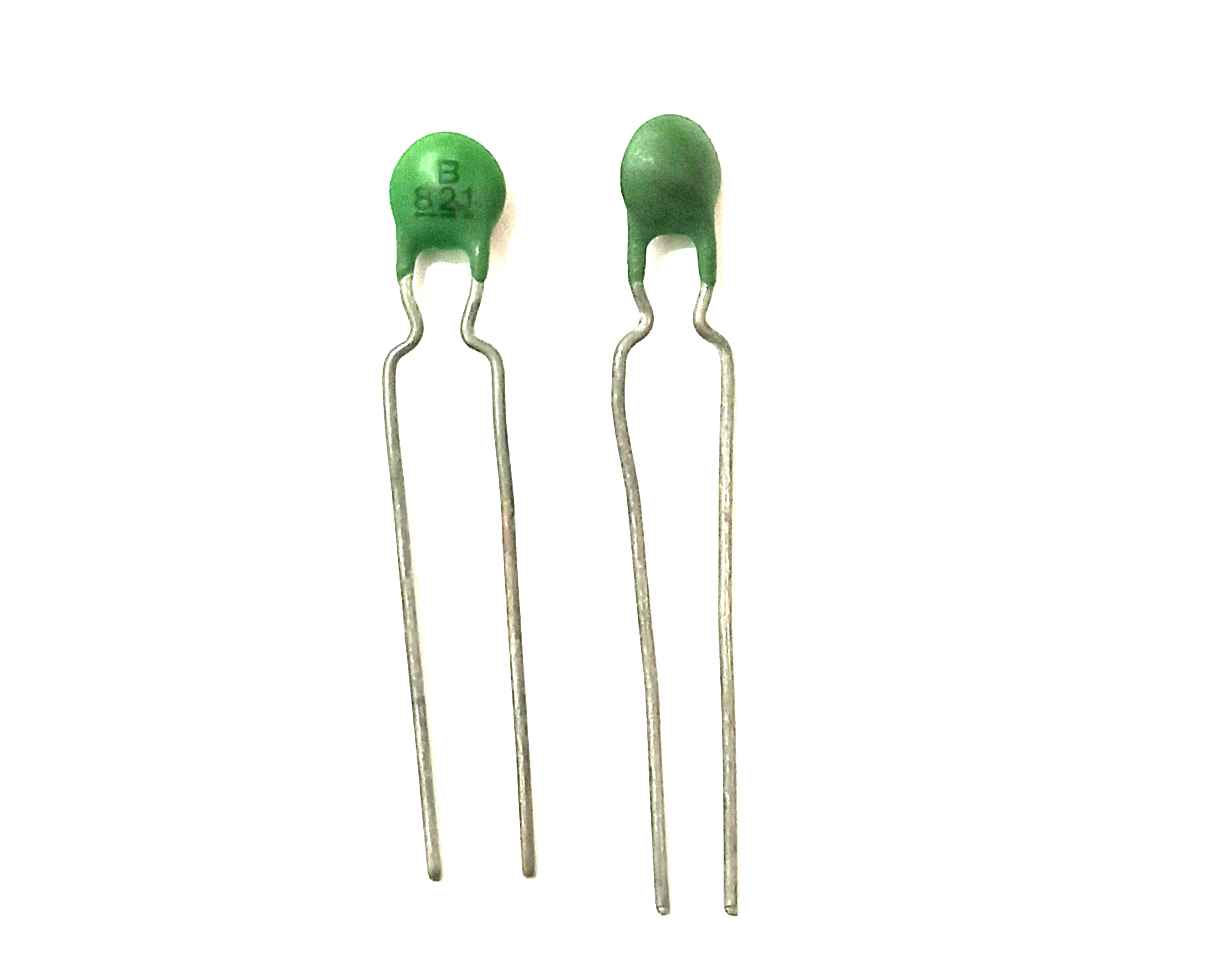 خازن عدسی ژاپنی ظرفیت 820 پیکو فاراد 100 ولت جنس قدیمی و نایاب.