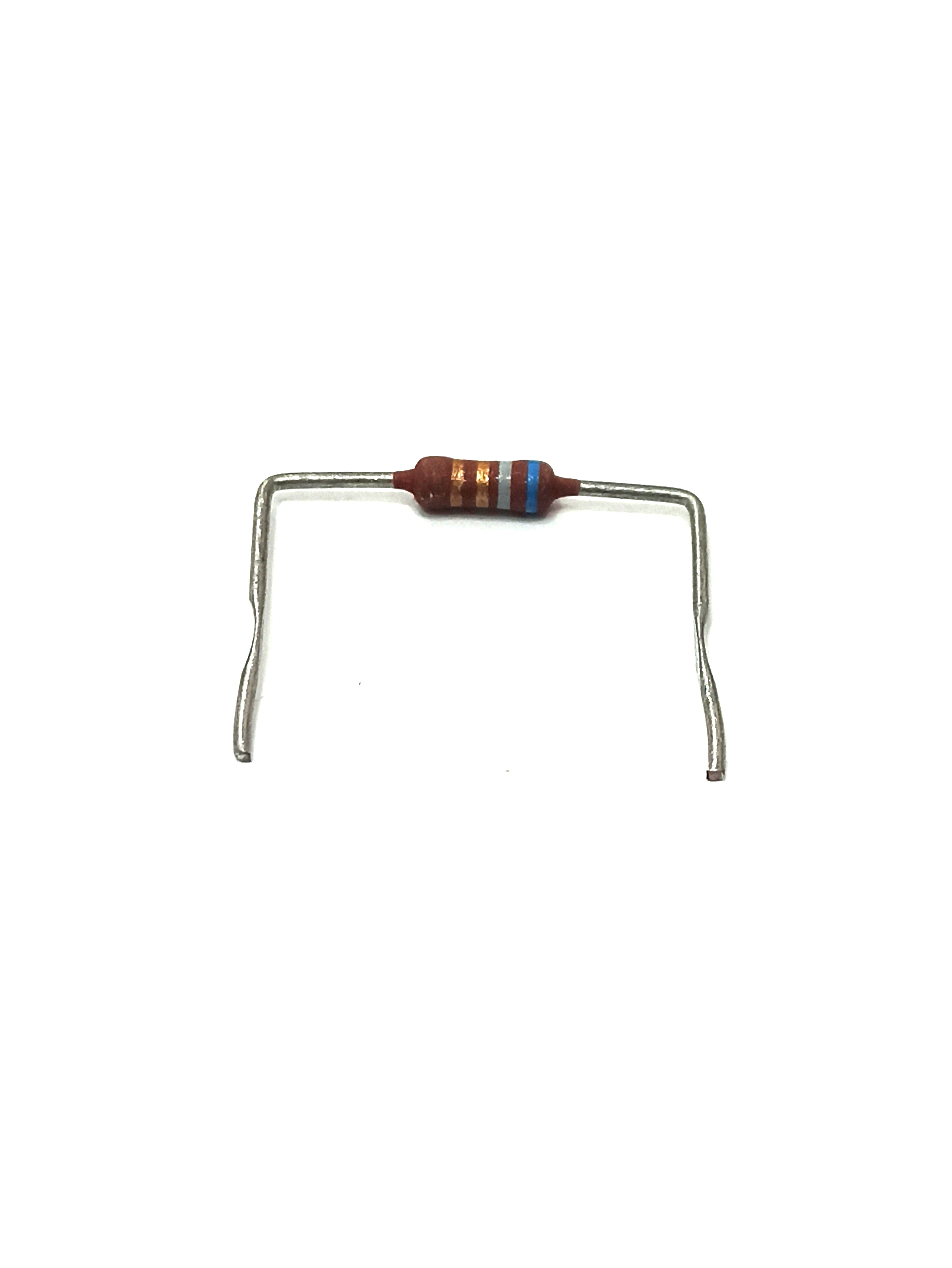 مقاومت 6.8 اهم 0.25 وات 5 درصد خطا برند پیلکور کره جنوبی جنس قدیمی پایه خمیده.
