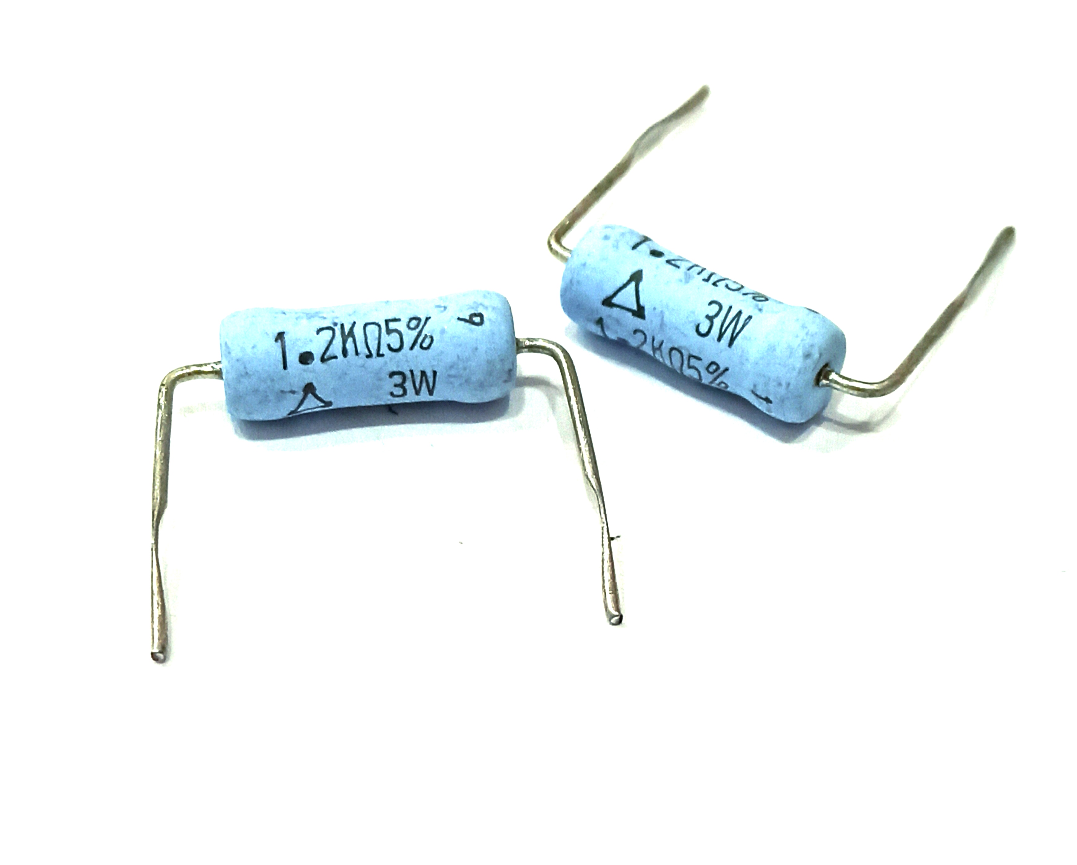 مقاومت 1.2 کیلو اهم 3 وات 5 درصد خطا برند ماتسوشیتا ساخت ژاپن قدیمی و نایاب پایه خمیده.